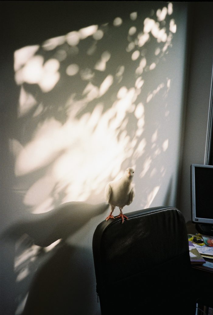 Escribí Cosita, mi primera novela, con Shankar en el hombro. La rescaté en noviembre de 2024 después de una visita a Correos. Cuando paseo intento que la mirada esté equilibrada y sea panorámica: mirar tanto al suelo como a los alrededores. Y esa tarde, cuando llegué a la altura de una portería de la Calle Cotonat en L’Hospitalet de Llobregat, vi algo blanco acurrucado contra una esquina. Era una paloma bravía, pero tenía las plumas de un blanco puro y una manchita redonda en el cuello formada por pequeñas plumas de color marrón (con las habituales pinceladas de lila y verde). La cogí sin pensarlo mientras dos tíos apoyados en un coche nos miraban y cerca de casa encontré una caja de cartón donde meterla; en ella, alguien había escrito la palabra «Shankar», así que la llamé Shankar. Estaba convencida de que esa noche moriría y la acomodé y tapé con mi mejor sábana después de alimentarla (primero con guisantes que intenté meterle en el buche, luego una inyección con agua y azúcar en el muslo). A la mañana siguiente me desperté con el corazón encogido pero cuando abrí la caja, Shankar me miró con uno de sus ojos negros. Su párpado, una membranita muy fina, se cerraba despacio, como si no tuviera pilas. El veterinario le diagnosticó paramixovirus, una enfermedad muy habitual entre las palomas, y una pata fracturada. De no haberla rescatado habría muerto esa tarde al lado de dos hombres y de una oficina de Correos, pero por suerte ahora la tengo en el hombro mientras escribo. Me encanta que esté ahí porque me distraigo menos y me levanto menos para dar vueltas sobre mí misma. Si me canso de la pantalla, la miro porque aunque esté quieta, en realidad siempre está en movimiento. Abre y cierra el pico sin parar, se rasca con una pata, abre las alas para estirarse… Suelo preguntarme de dónde habrá salido, pero por la zona en la que la encontré, donde hay varias iglesias y locales para fiestas, deduzco que debió formar parte de un cumpleaños, una boda o un truco de magia. Me la imagino en una caja oscura junto a otras, el momento en el que alguien abre la caja para que decenas de palomas salgan volando y a Shankar ahí, como el trozo de espinaca que se queda pegado en el tupper; un poco enferma, un poco rendida y asustada, un poco como yo cuando escribí Cosita.